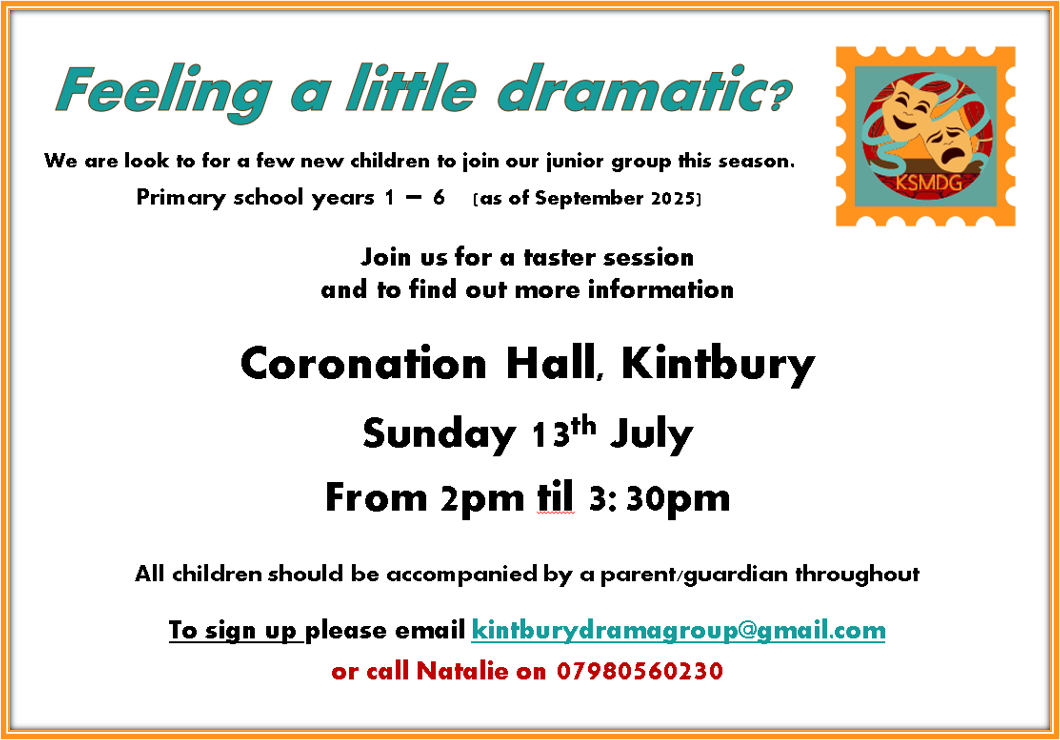 Maria Ainley-Taylor“My son absolutely loves attending Kintbury St Mary's Drama group every year. It's like a family where everyone is welcome. Like-minded people of all ages work together as a team to put on incredible productions each year & creativity is wholly encouraged. My son has been attending since he was 6 years old and it has boosted his confidence immensely. This will only help him with any future endeavours. I highly recommend Kintbury Drama Group to anyone who wishes to gain experience in performing.”